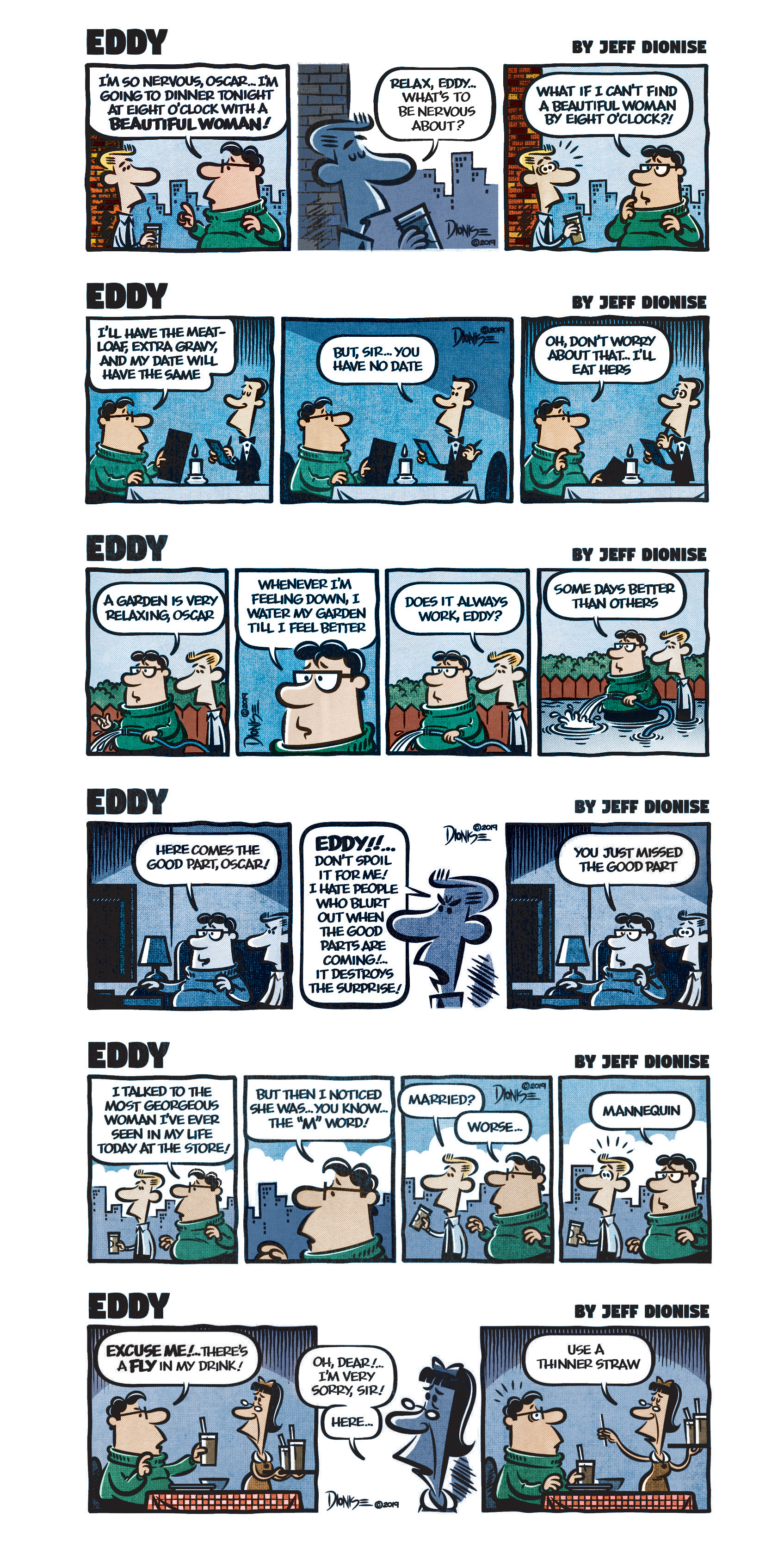 "Eddy" is a comic strip that was a part of a development deal with Tribune Media Services. He is a lovable loser caught between college and the real world: